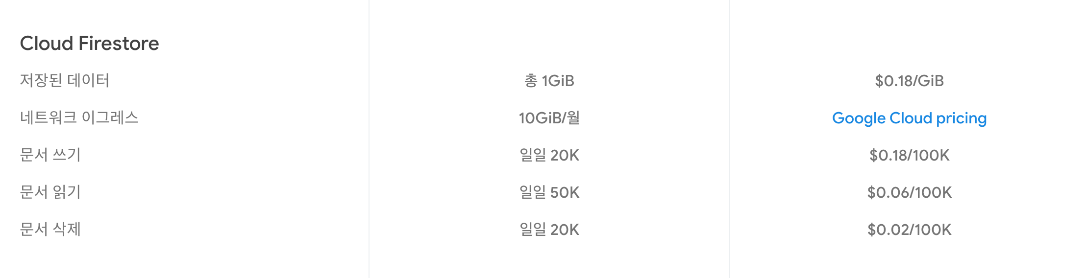 Firestore와 storage의 요금이다.