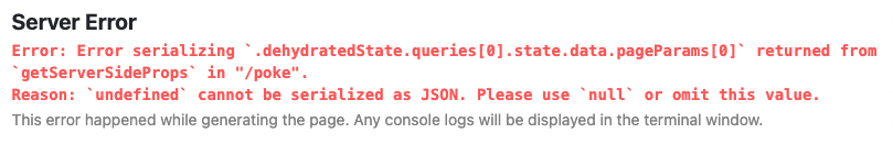 위와 같이 dehydrate한 것을 stringify했다가 다시 parse하는 것은 InfiniteQuery를 사용할 때 발생하는 이슈이다. 그냥 dehydrate한 상태로 넘겨주면 다음과 같은 오류가 난다.