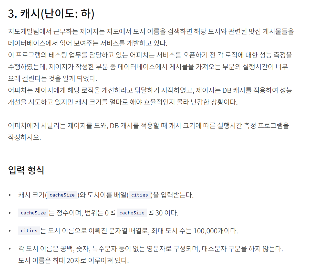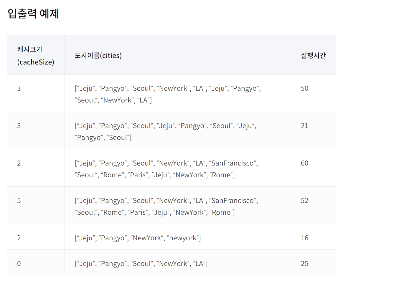 - 해당 도시를 캐시에서 제거하고, 다시 마지막 인덱스로 넣어준 후 실행시간에 1을 더한다.