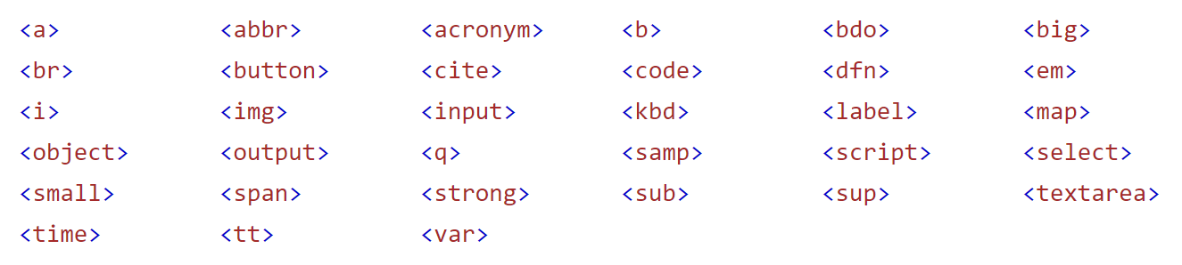인라인 요소는 <a> 태그 부터 <span>, <script>, <textarea>, <br>, <img>, <input> 등이 있다.