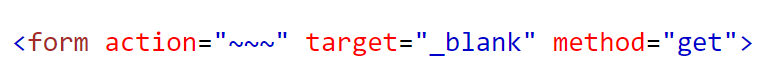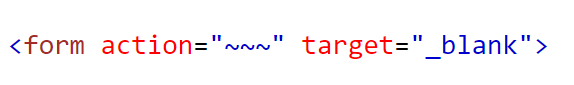 target 속성은 위와 같이 사용한다. form에서 제출한 값을 action 속성에서 가르키는 서버 등이 처리하고, 그것을 어디에 나타낼 것인지를 정한다. 사진처럼 target 값에 "_blank" 를 주면 제출하는 버튼이나 제출했을 때 브라우저에서 새로운 창이 열리면서 그 창에 입력값을 처리한 정보들이 나타난다. Default 값은 "_self" 현재 사용자의 브라우저 창에서 나타난다.