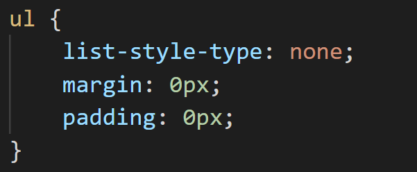 그리고 CSS를 통해 <ul> 태그에 list-style-type: none; margin: 0px; padding: 0px; 속성을 주면 기초 작업은 끝난다. list-style-type은 리스트 앞에 나타나d는 총알을 없애주기 위함이고 margin은 다른 요소와의 간격을 주지 않기 위함, padding은 네비게이션 메뉴끼리 붙어있게 하기 위함이다.