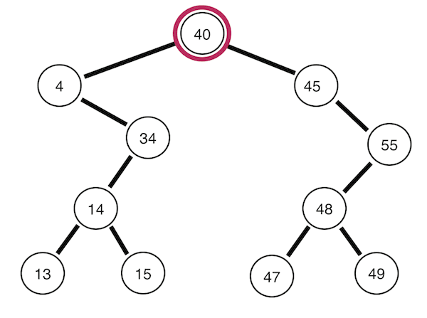 bst.pre_order_traversal() # 40 4 34 14 13 15 45 55 48 47 49